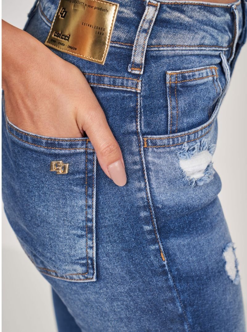 Calça Jeans Bia Média A calça é definitivamente uma das peças obrigatórias para o guarda-roupa de qualquer pessoa, seja para encontrar os amigos ou mesmo em determinados eventos. Um dos modelos que com certeza vai te conquistar é a Calça Jeans Bia Média. A Calça apresenta shape slim e modelagem Bia. A calça também possui cós com passantes e botão, bolsos frente, bolso relógio, bolsos no traseiro, detalhes de rasgos e puídos e barra simples. A calça pode ser usada em diversos ambientes e ocasiões, dependendo da composição a ser feita. No entanto, para que o look fique ainda mais bonito, existem algumas dicas que podem ser seguidas. Calça Jeans Bia Média como usar? Calça com CamisasA camisas é uma das principais peças, com ela é possível criar diferentes combinações. São peças com cores mais neutras, com estampa, coloridas e muitas outras. Como a calça oferece praticidade, você pode usar uma camisa lisa para passear ou até mesmo trabalhar.Se o seu trabalho for um ambiente formal, invista nas peças sem estampa, até mesmo combinando com uma terceira peça, como blazers ou jaquetas. Agora, se for algo mais despojado, aposte na criatividade na hora de montar seu look. Calça com TopOs tops também são peças essenciais na hora de criar um look, já que proporcionam conforto e estilo ao visual. Atualmente, existe uma variedade de modelos de tops para escolher e garantir uma produção empoderada, sensual e elegante! Calça com RegataA calça vai bem com praticamente todo outro modelo de roupa. No entanto, saber combinar com uma regata mais sofisticada é fundamental para um look elegante e confortável. Calça com BodyPara realçar as curvas do corpo e ainda assim manter a elegância, opte por bodys mais justos. A Calça Jeans Bia Média uma peça que não pode faltar no seu guarda-roupa. Na Colcci, você encontra esse e outros modelos de itens essenciais.